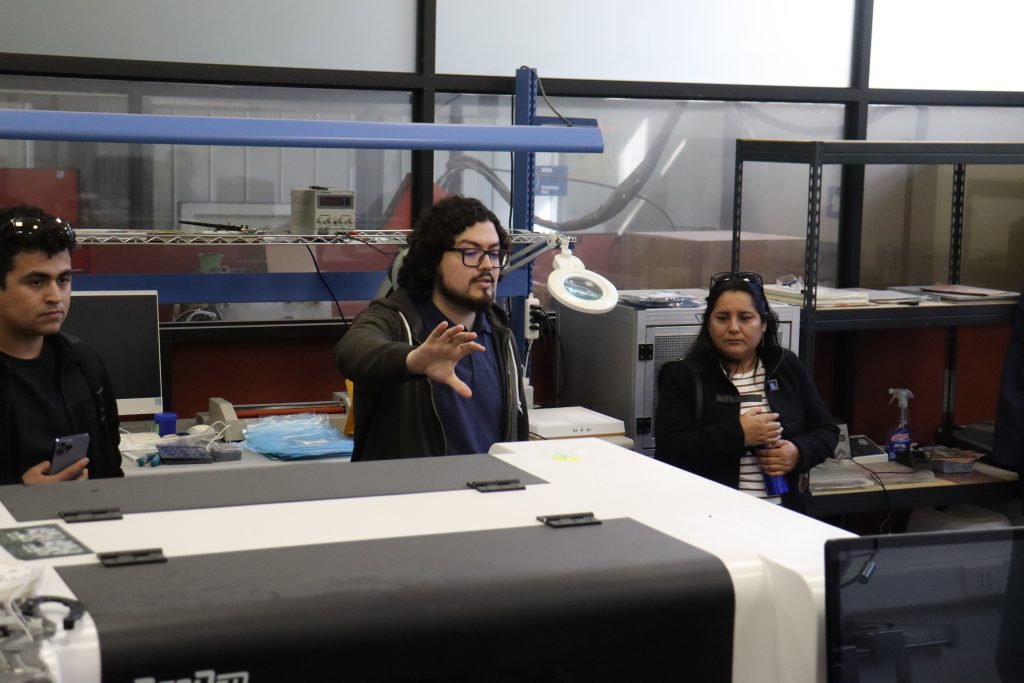 Karina Garcés, Jefa de Proyectos del C4i, lideró el tour por los laboratorios de manufactura avanzada en el que presentó las principales fortalezas y capacidades que tiene el Centro para entregar al ecosistema industrial, además de destacar las habilidades, conocimientos y herramientas de maneja su equipo de profesionales.